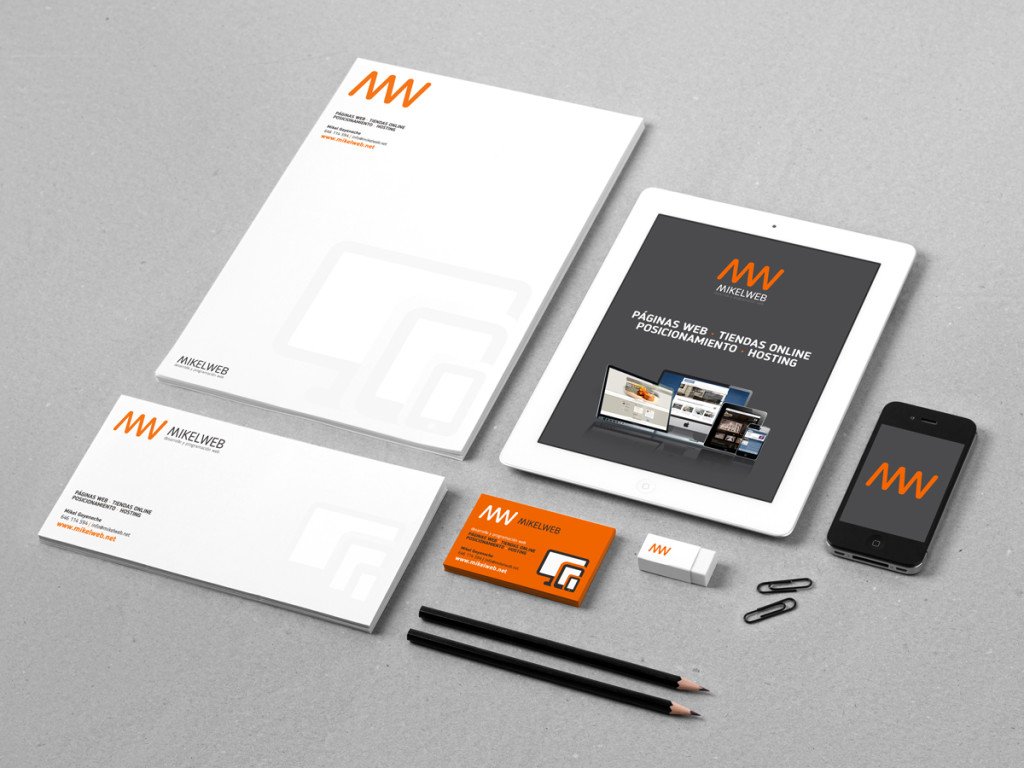 Diseño de la identidad corporativa de Mikelweb, un joven programador y desarrollador web que precisaba el diseño de una imagen corporativa juvenil y dinámica que arropase su presencia en el mercado al que acaba de incorporarse.