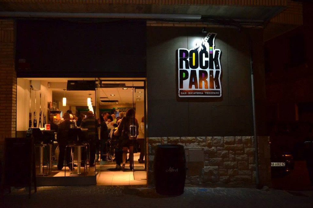 Diseño de logotipo, rótulos y otras aplicaciones para Rock Park, un bar de bocadillos con zona infantil en Valtierra.